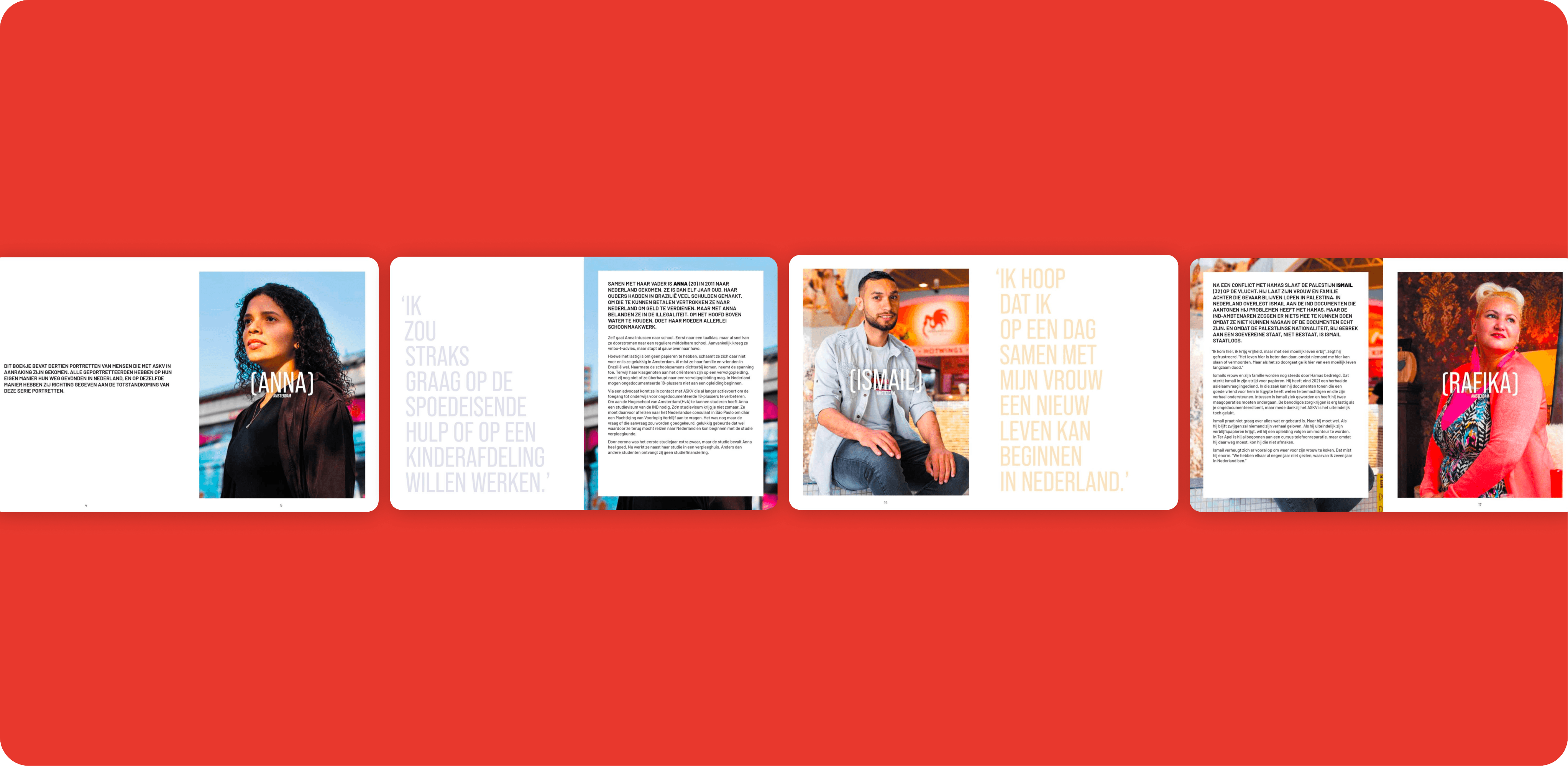 [In Amsterdam] is a conceptual photo book created for a charity event, celebrating the lives of undocumented residents in Amsterdam. The project amplifies personal stories and portraits by transforming them into a visual narrative that highlights both resilience and marginalisation. The design serves as a documentary-driven visual essay that honours identity, visibility, and presence.